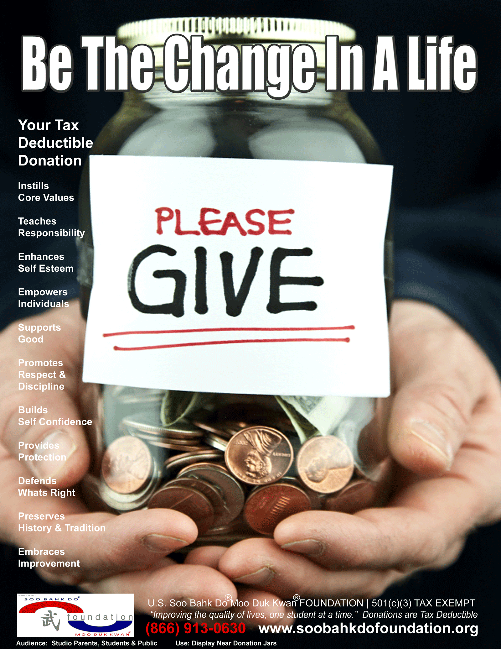 2. Make a tax-deductible online donation to the U.S. Soo Bahk Do Moo Duk Kwan FOUNDATION